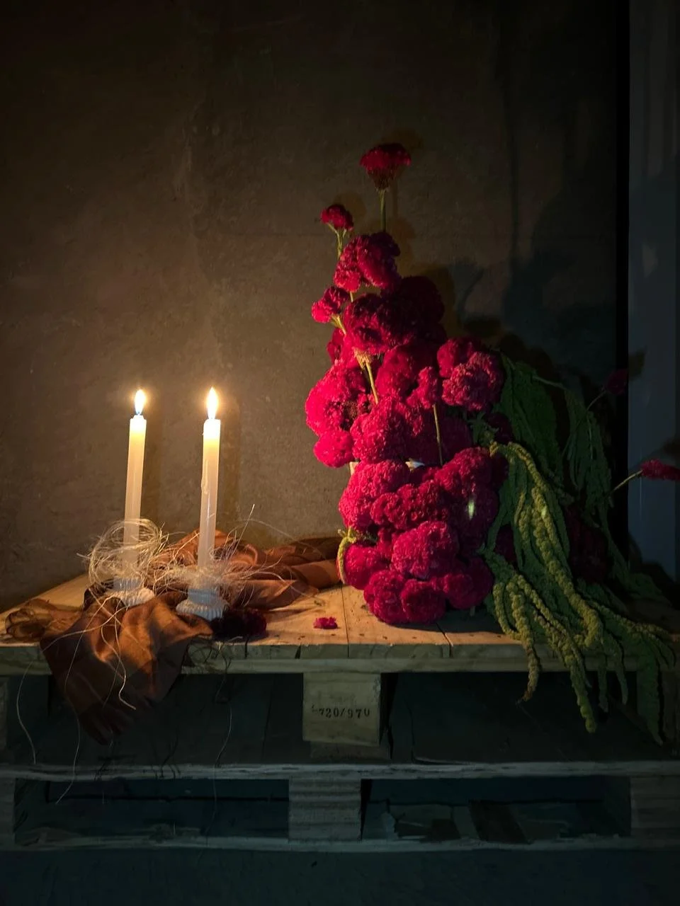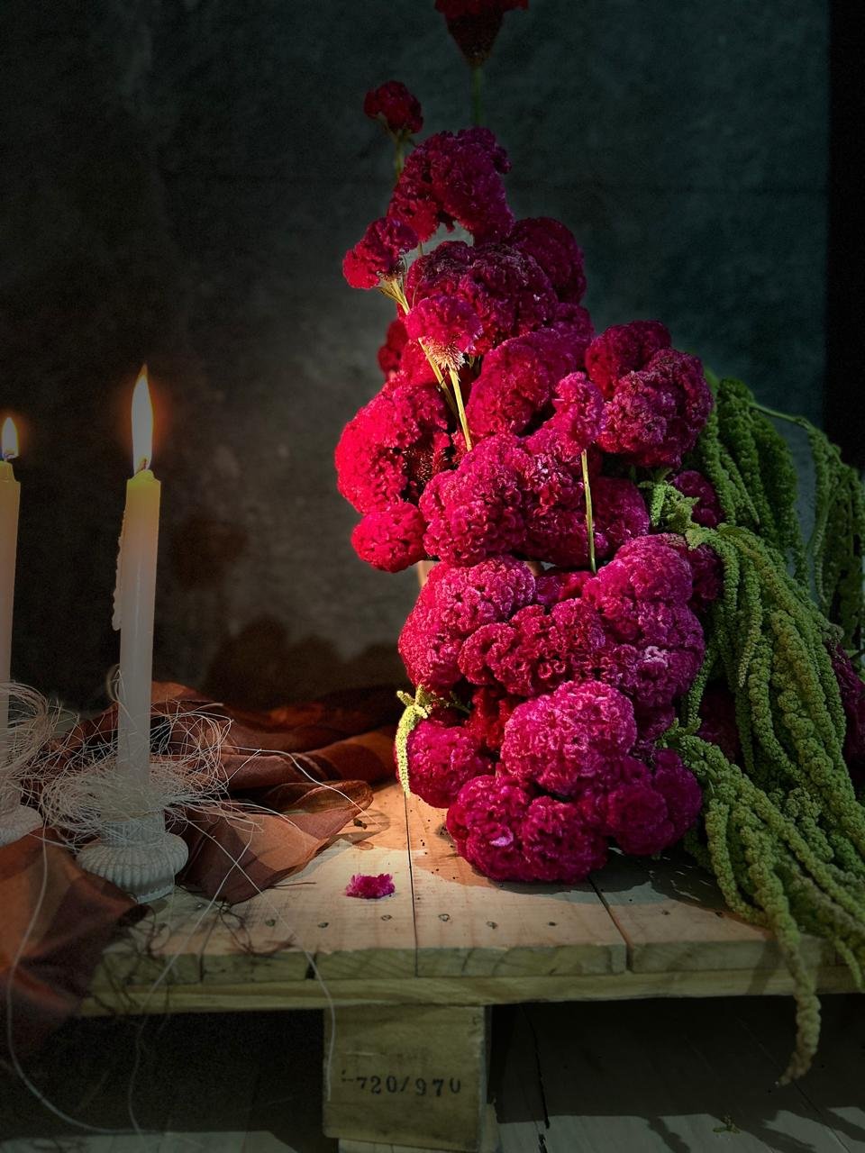 The candles were lit, silent witnesses to this transformation, and the pallet, once simple and ordinary, was now a throne for a kingdom of flowers. Every time the flame flickers, it seems to whisper the secret of how the ordinary can become extraordinary.