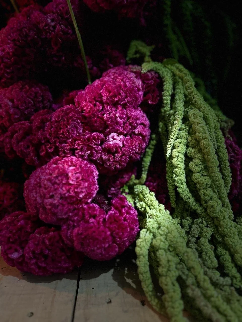 “Once upon a time, there was a forgotten pallet, one of those that goes unnoticed in any corner. One day, the fuchsia celosias decided to make it their new home. They climbed to the top, reaching for the sun, while the green amaranths cascaded around them, as if trying to embrace the rough wood that held them.